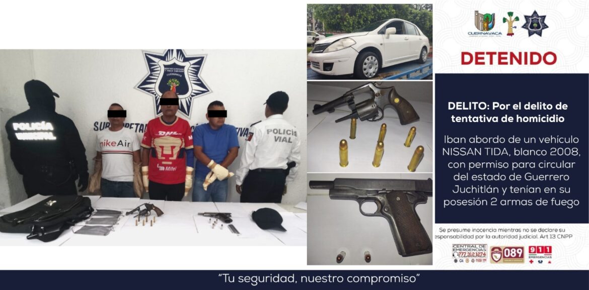La tarde del 24 de octubre cuando elementos de la Policía Preventiva de Cuernavaca realizaban recorridos de seguridad y vigilancia, un transeúnte solicito apoyo para seguir un vehículo blanco NISSAN tipo tida; ya que había realizado detonaciones con un arma de fuego minutos antes.