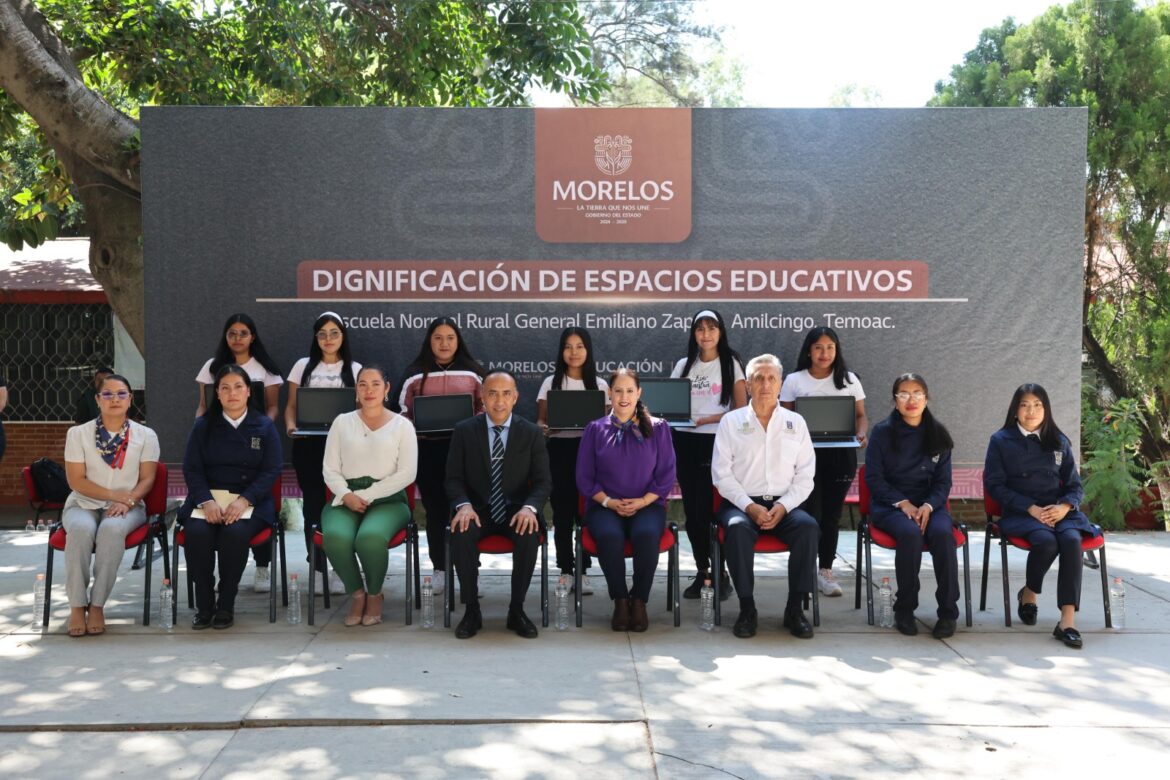 En seguimiento al compromiso de la gobernadora Margarita González Saravia, por dignificar los espacios de vida y estudio de la comunidad estudiantil de la entidad, la secretaria de Educación, Karla Aline Herrera Alonso, y el encargado de despacho de la dirección general del Instituto de la Educación Básica del Estado de Morelos (IEBEM), Raúl Aguirre Espitia, realizaron la entrega de equipamiento para dormitorios en la Escuela Normal Rural “General Emiliano Zapata” de Amilcingo, en el municipio de Temoac.