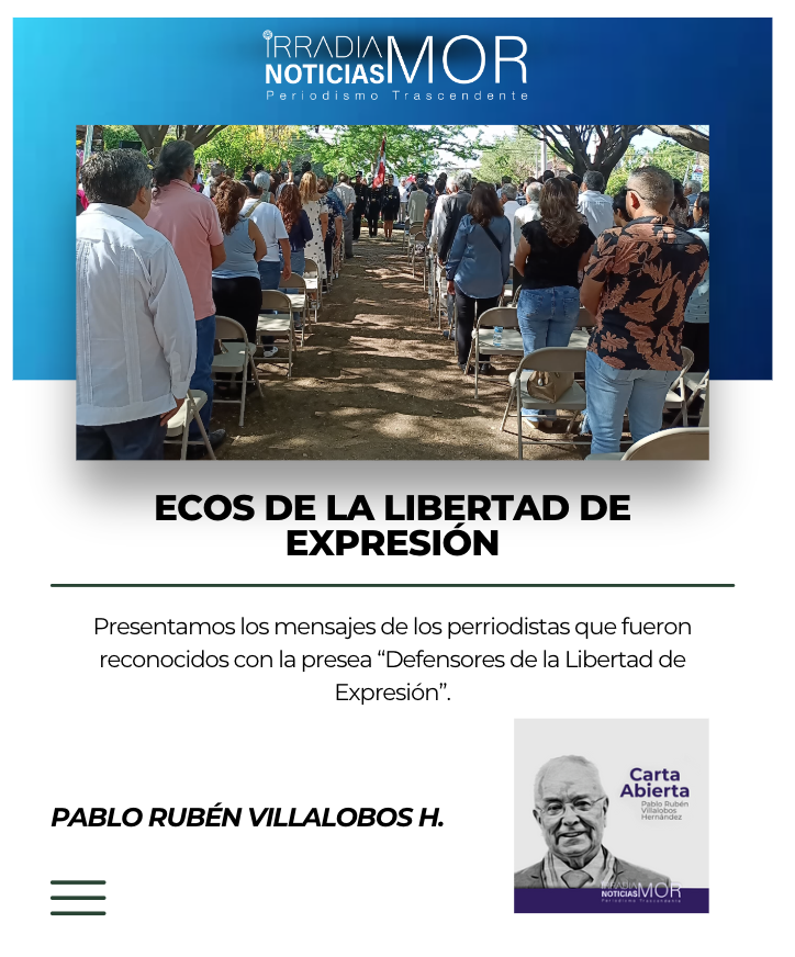 Como parte de los Ecos por el Día de la Libertad de Expresión el pasado 7 de junio, por la relevancia y trascendencia del contenido de su mensaje, dejo aquí parte del referido por el Galardonado Periodista Carlos Ramírez Hernández que recibió la Presea Defensores de la Libertad de Expresión y en uso de la palabra dijo: “Agradezco al Consejo Cívico Ciudadano y a la Asociación de Periodistas y Comunicadores de Morelos la decisión de haberme distinguido con la Presea Defensores de la Libertad de Expresión, en momentos tan delicados en los que se encuentra el oficio periodístico en el País… Los premios deben ser extendidos a los trabajadores de la información que dedican su vida y a veces la pierden en el compromiso de informar a la sociedad de la realidad que muchas veces se quiere ocultar… A ellos nos debemos… La larga lista de profesionales de la información agredidos por los poderes reales y los que han caído en cumplimiento de su deber debe fortalecer el contexto de los reconocimientos que se otorgan a periodistas por su labor en la comunicación… El recordatorio no está de más: en junio 2017 la revista La Crisis que me honro en haber presidido y dirigido, recogió el recuento de Teodoro Rentería Arróyave sobre profesionales del periodismo y la comunicación agredidos desde 1984 hasta ese año y en mayo pasado el periódico El Independiente de mi creación completó las cifras hasta el primer trimestre de 2025: 269 en el primer periodo y 400 en el segundo… Y la cifra no solo debe causar horror, sino que debe llamar la atención en lo que está ocurriendo en el ámbito de la información por el cumplimiento de las funciones periodísticas al servicio de los lectores… A partir de esos datos, quiero aprovechar la oportunidad para lanzar una botella al mar: la creación de una Organización No Gubernamental que tome toda la experiencia de Teodoro Rentería en la contabilidad macabra de periodistas agredidos y genere mecanismos para la protección del trabajo que sólo se justifica si sirve a los intereses de la sociedad… La idea es crear estructuras de solidaridad gremial y regional en momentos en que el periodismo y la información en general es una de las funciones vitales de la democracia… De nueva cuenta agradezco el reconocimiento y desde luego renuevo mi compromiso de mantener y profundizar las áreas de defensa de la libertad de expresión”… Hasta aquí parte del mensaje expresado por el Preseado Periodista Carlos Ramírez… ¡Vayan nuestro reconocimiento y Felicitaciones!