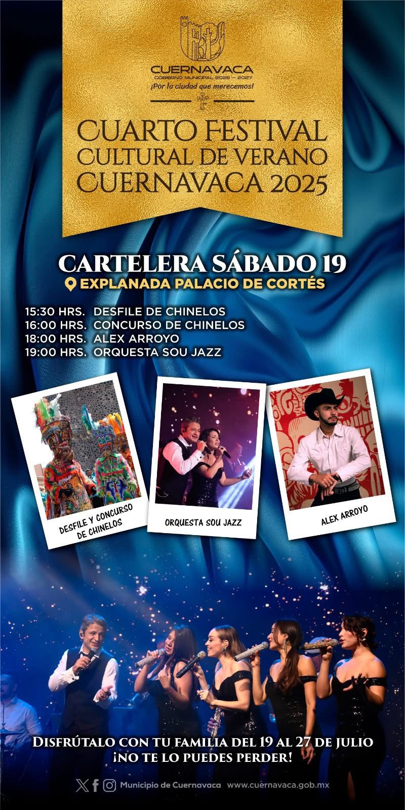 El Cuarto Festival Cultural de Verano 2025 contará con presentaciones en el Centro Histórico, así como en los poblados originarios de Cuernavaca, reforzando así su vocación incluyente y descentralizada.