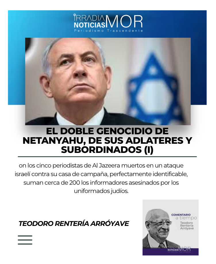 La guerra de exterminio que lleva a cabo el primer ministro de Israel, Beniamin Netanyahu en Gaza, y que la ha extendido a los periodistas, lo cual se ha convertido en un doble genocidio, de acuerdo con la definición de las enciclopedias y/o diccionarios, “es el exterminio o eliminación sistemática de un grupo humano por motivos de raza, etnia, religión, política o nacionalidad”, nosotros agregamos y a los grupos de profesionales de la información, en este caso sistemático y pertinaz de los asesinatos de periodistas para evitar el cumplimiento de su alta tarea profesional, dar fe de sus crímenes de lesa humanidad. Con los cinco periodistas de Al Jazeera muertos en un ataque israelí contra su casa de campaña, perfectamente identificable, suman cerca de 200 los informadores asesinados por los uniformados judíos.