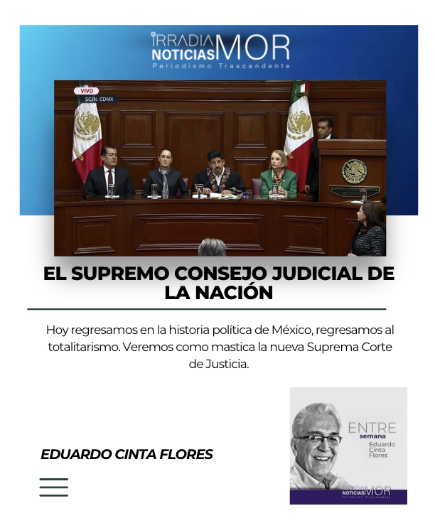 Hoy regresamos en la historia política de México, regresamos al totalitarismo. Veremos como mastica la nueva Suprema Corte de Justicia. En la fotografía en donde se reúnen los tres poderes de la Cuarta Transformación, en otra frase diría: El Supremo Consejo Judicial de la Nación.
