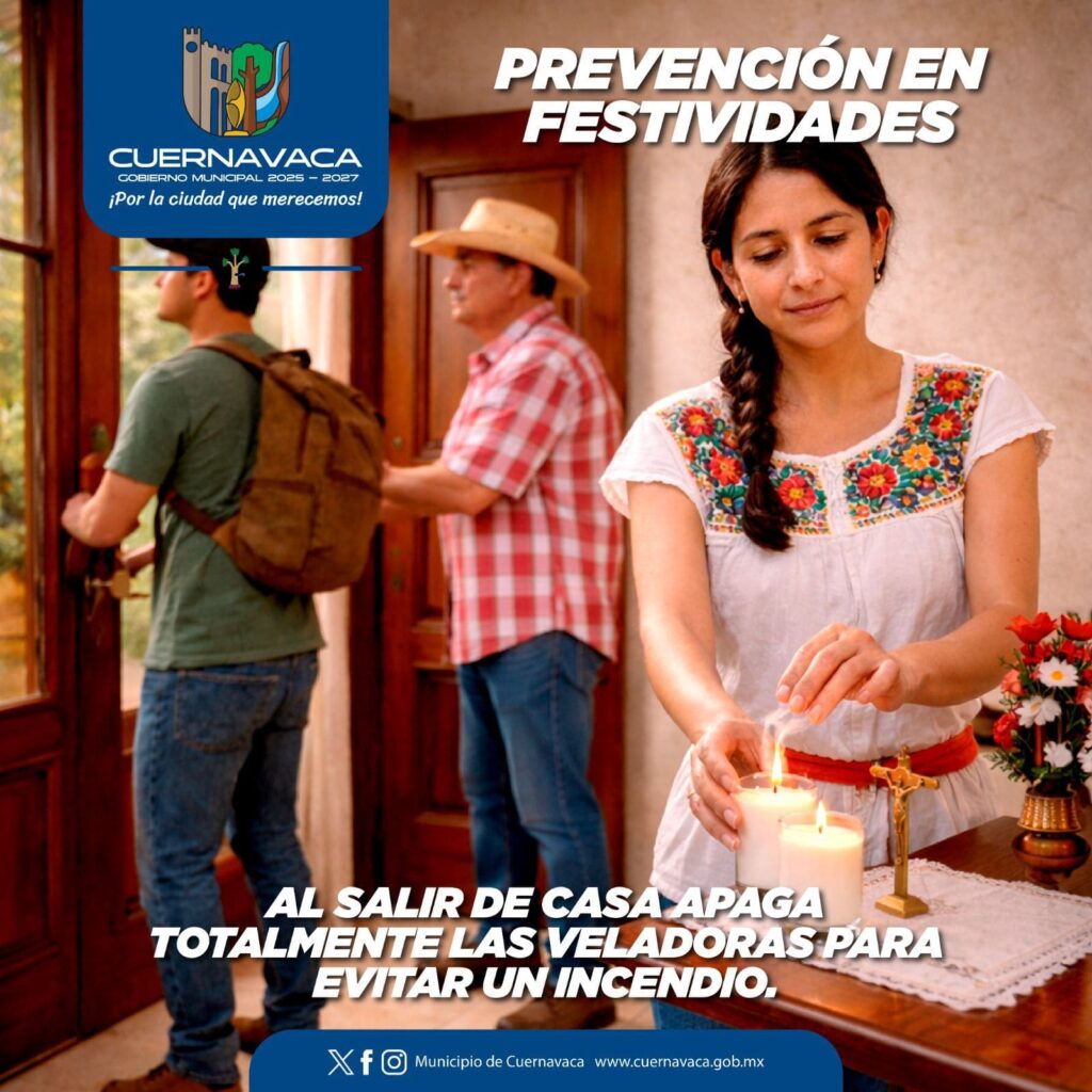 El titular de la Dirección de Bomberos, Rescate y Urgencias Médicas, Moisés Ramos, informó que, antes de salir de casa, es fundamental desconectar los aparatos eléctricos, cerrar las válvulas de gas y las llaves de agua, así como verificar que puertas y ventanas queden debidamente aseguradas. Asimismo, enfatizó la importancia de apagar por completo veladoras y cualquier fuente de fuego para evitar incendios.
