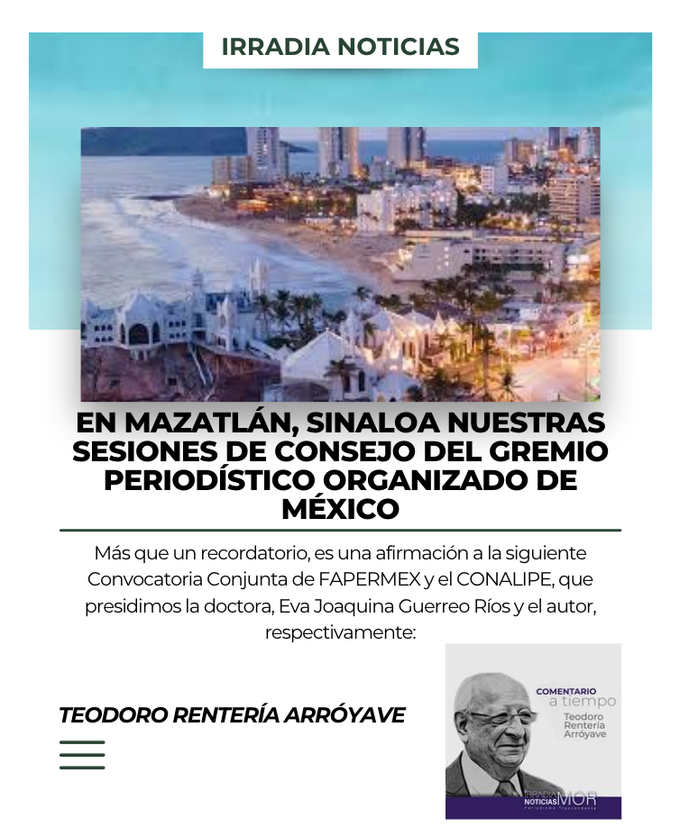 A los integrantes del Consejo Directivo, Comité de Vigilancia, Honor y Justicia y Presidentes Honorarios Vitalicios -Consejo Consultivo- de la Federación de Asociaciones de Periodistas Mexicanos, A. C., FAPERMEX, y del Consejo Directivo y Comité de Vigilancia del Colegio Nacional de Licenciados en Periodismo, CONALIPE, A. C., con base en sus respectivos Estatutos se les convoca a la Sesión Conjunta, a desarrollarse en Mazatlán, Sinaloa, el sábado 27 de septiembre de 2025 a las 10:00 horas, en primera convocatoria; en caso de no existir quórum la sesión iniciará a las 10:15 horas con los asistentes presentes.