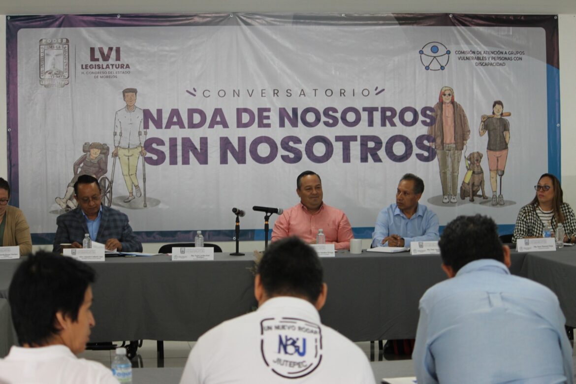 Ante un nutrido grupo de asistentes, puntualizó que dicho encuentro fue concebido como un espacio de expresión, consulta y propuesta, con el objetivo de escuchar la voz y la demanda social de las personas con discapacidad y sus organizaciones sociales, a través de la presentación de propuestas expuestas ante la comisión legislativa, lo cual permitirá que, desde su perspectiva, se realicen mejoras al marco legal en Morelos a favor de la progresividad de sus derechos.