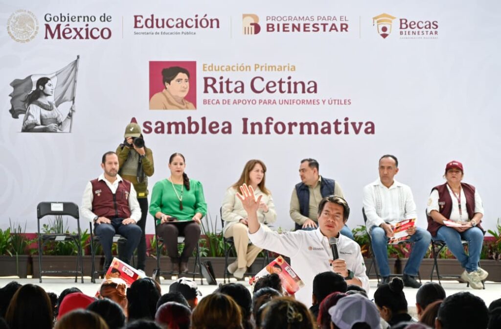 Por su parte, Mario Delgado precisó que la beca “Rita Cetina” otorgará un apoyo anual de dos mil 500 pesos por estudiante de primaria pública, y reiteró que la instrucción de la Presidenta es que ningún niño o niña abandone la escuela por falta de recursos.
