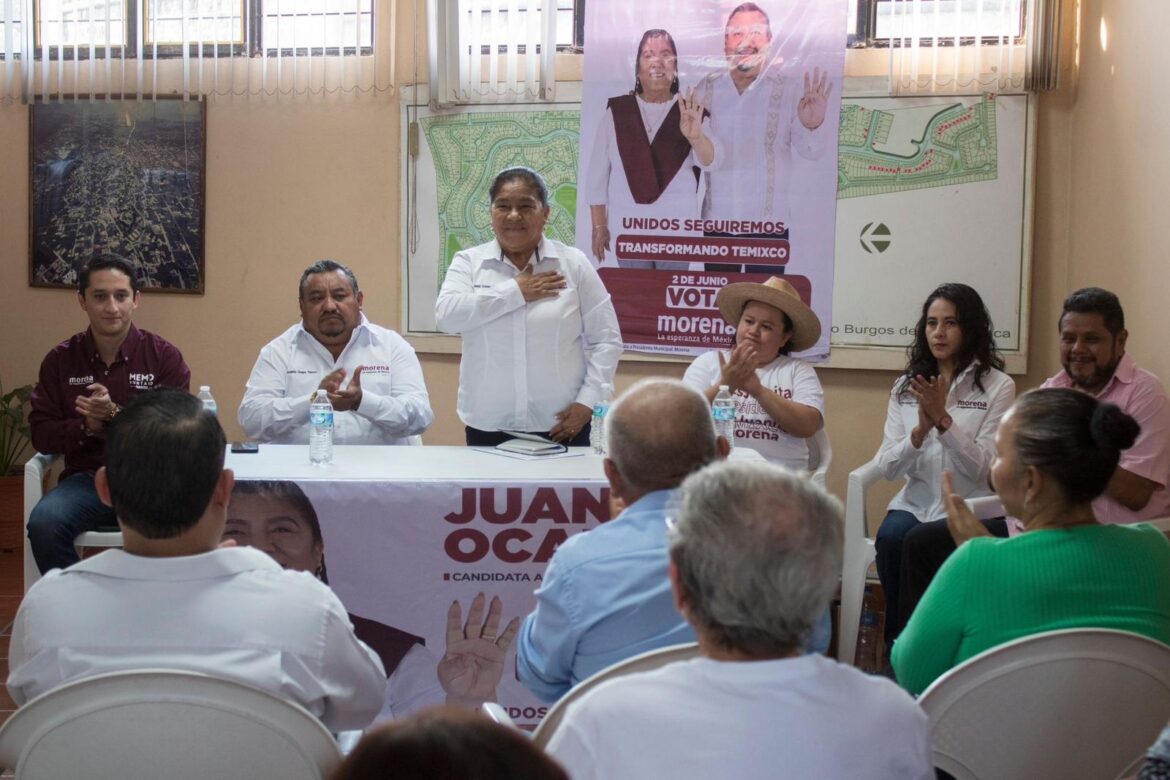 A 15 días de iniciada su campaña, la candidata a la alcaldía de Temixco por el Partido Movimiento Regeneración Nacional (MORENA) Juanita Ocampo y su fórmula han tenido una gran aceptación de acuerdo a encuestas recientes realizadas en plataformas digitales.