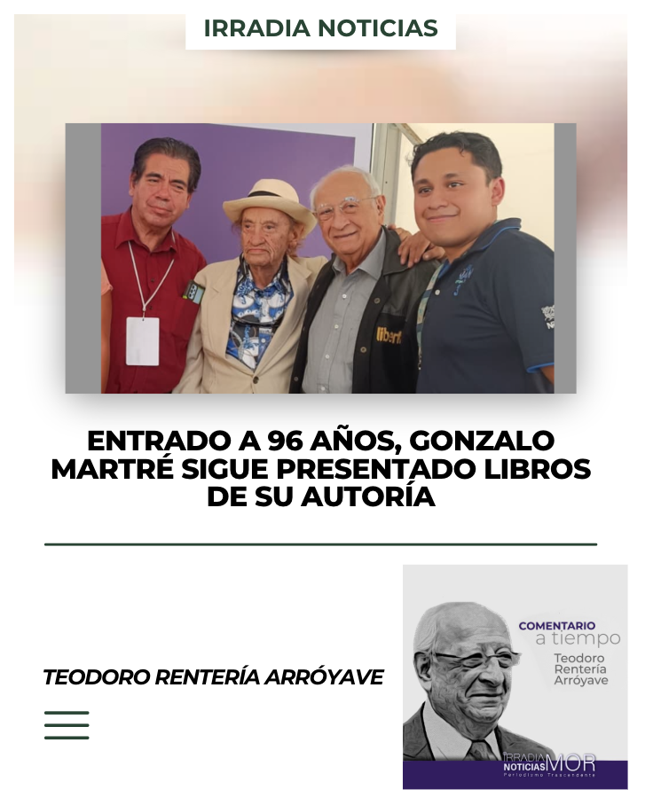 Gonzalo Martré es el seudónimo de un ilustre y muy leído escritor -novelista-, y periodista “irreverente” quien a escasos dos meses de cumplir 96 años sigue en su noble producción bibliográfica y presentando sus libros, este lunes 13 en la Feria Internacional de Libro, FIL Zócalo Ciudad de México en la Calera Uno.