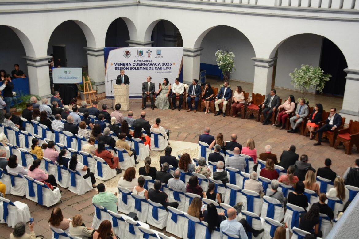 Al destacar que lo mejor de la Ciudad Capital del Estado de Morelos está en su gente, el presidente municipal José Luis Urióstegui Salgado, encabezó este jueves la entrega del galardón en grado de distinción de honor denominado “Venera Cuernavaca” a 19 personas físicas, empresas e intituciones que han generado acciones trascedentes para la humanidad y en favor del desarrollo y posicionamiento del municipio a nivel nacional e internacional.