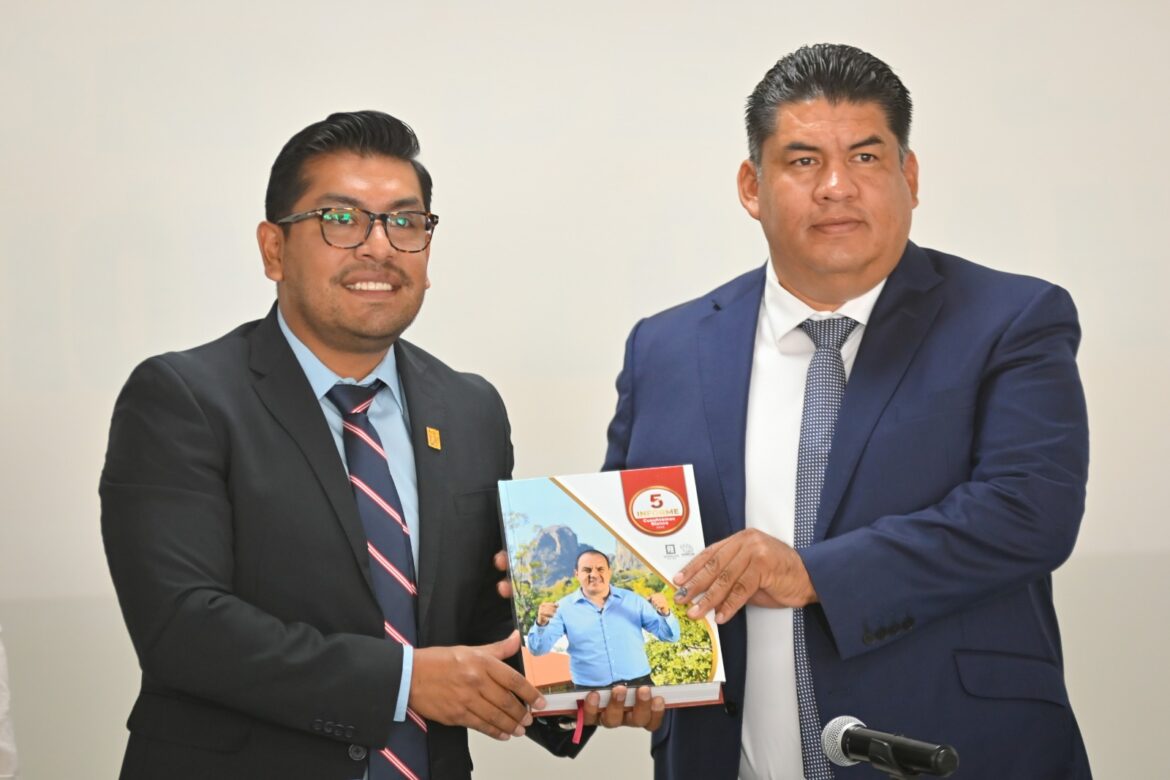 Dando cumplimiento a lo dispuesto por el Artículo 33 de la Constitución Política del Estado Libre y Soberano de Morelos, el secretario de Hacienda, José Gerardo López Huérfano, entregó al Congreso local, el Quinto Informe de Gobierno de Cuauhtémoc Blanco Bravo.