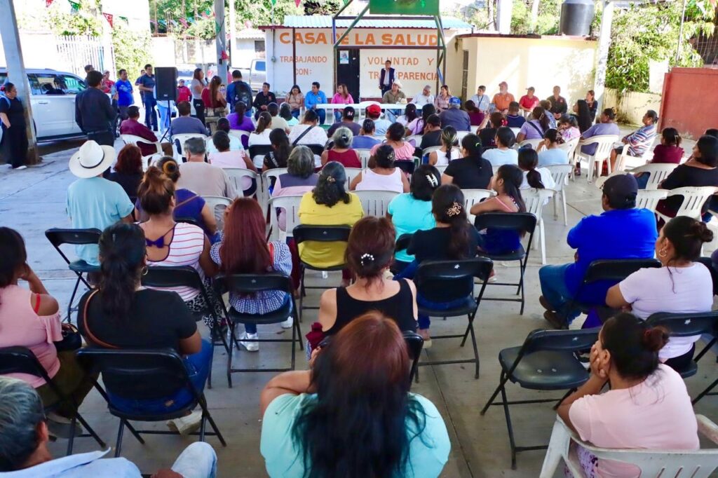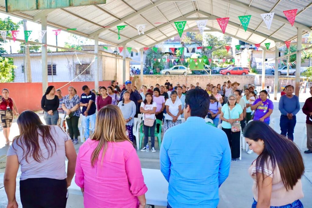 Acompañada de los integrantes del Comité Estatal del PT, Tania Valentina Rodríguez dialogó con las familias damnificados que se ubican en el albergue instalado en la cancha de usos múltiples de dicha comunidad.