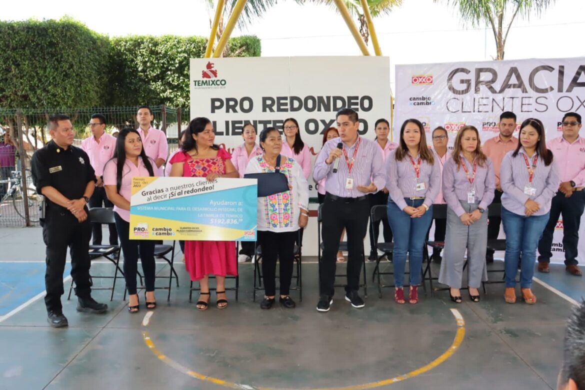 “Gracias al Programa de Redondeo podremos adquirir productos de la canasta básica, tales como frijol, arroz, leche en polvo, huevo, verduras, productos no perecederos y también medicamentos para atención de primer nivel, beneficiando a mil personas de forma directa y 2mil 500 de forma indirecta, les agradecemos a ustedes que día a día invitan incansablemente a los Clientes de OXXO a redondear, son la pieza más importante en este programa, con su apoyo y labor de redondeo benefician a quien más lo necesita” detalló la presidenta del DIF Temixco Leticia Aidee Mota durante su intervención.