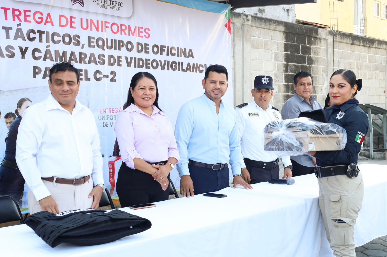 Con la convicción de que invertir en Seguridad Pública es una necesidad y un compromiso con el pueblo, así como con quienes están dispuestos a responder ante cualquier emergencia, el alcalde Roberto Gonzalo Flores Zúñiga “Chalo Flores” realizó la entrega de uniformes, chalecos tácticos, cámaras de videovigilancia y equipo de cómputo y oficina a la Policía de Xochitepec.