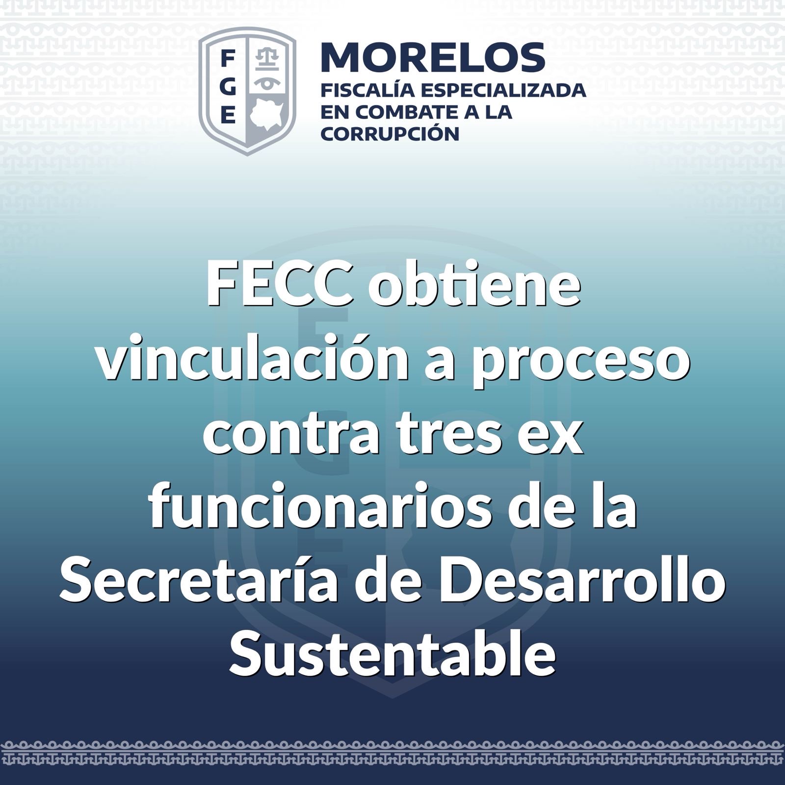 La Fiscalía Especializada en Combate a la Corrupción (FECC) obtuvo un auto de vinculación a proceso en contra de Einar Topiltzin “N”, Noé “N” y José Iván “N”, ex funcionarios de la Secretaría de Desarrollo Sustentable (SDS), por su probable participación en el delito de ejercicio indebido del servicio público.