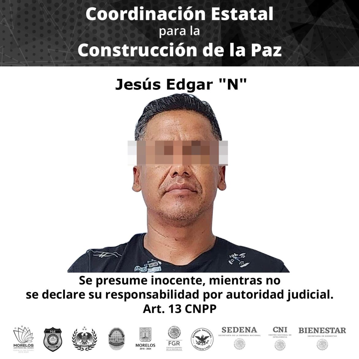 Una vez librado el mandamiento judicial, la información fue compartida con las autoridades estatales y federales que integran la Mesa de Coordinación para la Construcción de la Paz y Seguridad en Morelos, para desarrollar el intercambio de información y las acciones pertinentes para lograr su aprehensión.