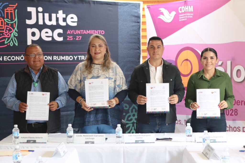 Con el objetivo de fortalecer la protección y promoción de los derechos humanos en el municipio, el Ayuntamiento de Jiutepec y el DIF Municipal firmaron un convenio de colaboración con la Comisión de Derechos Humanos del Estado de Morelos (CDHM).