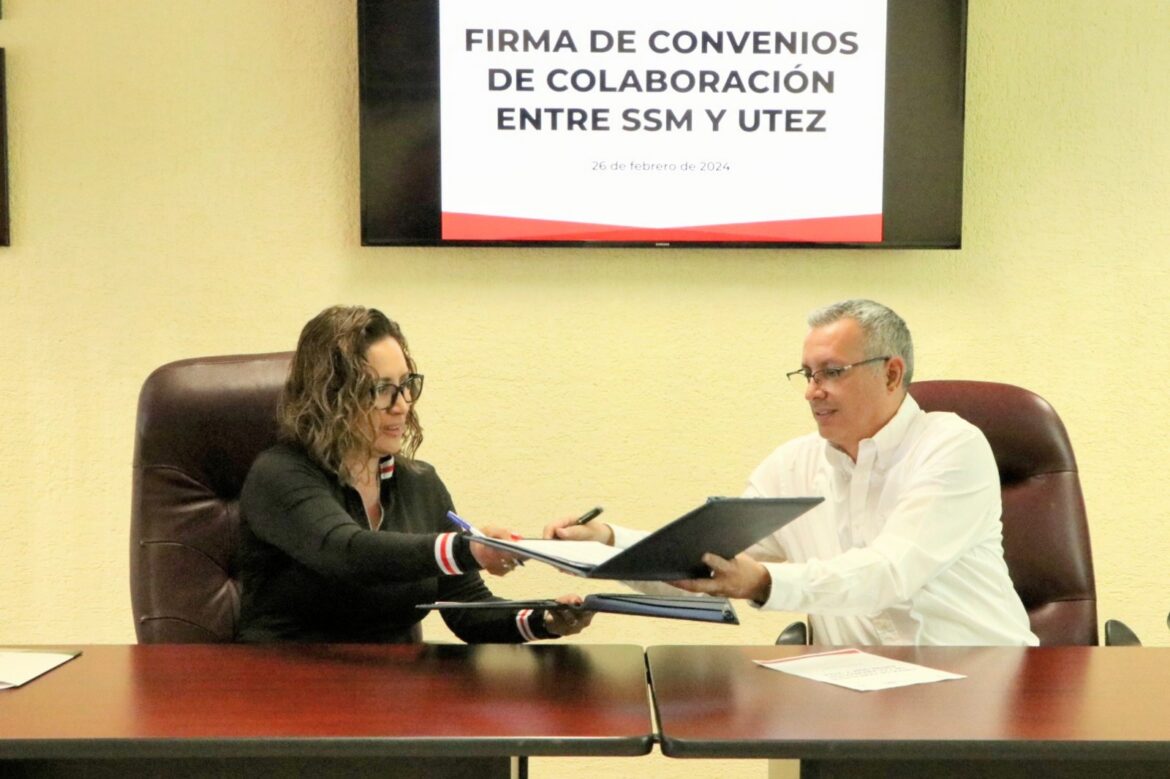La rectora de la Universidad Tecnológica Emiliano Zapata (UTEZ), Sandra Lucero Robles Espinoza, y el director general de Servicios de Salud de Morelos (SSM), Héctor Barón Olivares, firmaron un convenio de colaboración para que estudiantes de Diseño, Administración, Informática y Terapia Física, puedan realizar su servicio y prácticas profesionales en las unidades sanitarias y administrativas de SSM.