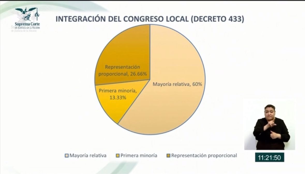 La Suprema Corte de Justicia de la Nación determinó por mayoría de votos como inconstitucional la figura de “primer minoría” para elegir diputados; ante ello la reforma que incrementó de 20 a 30 diputados para la elección del 2027 quedó sin efectos.