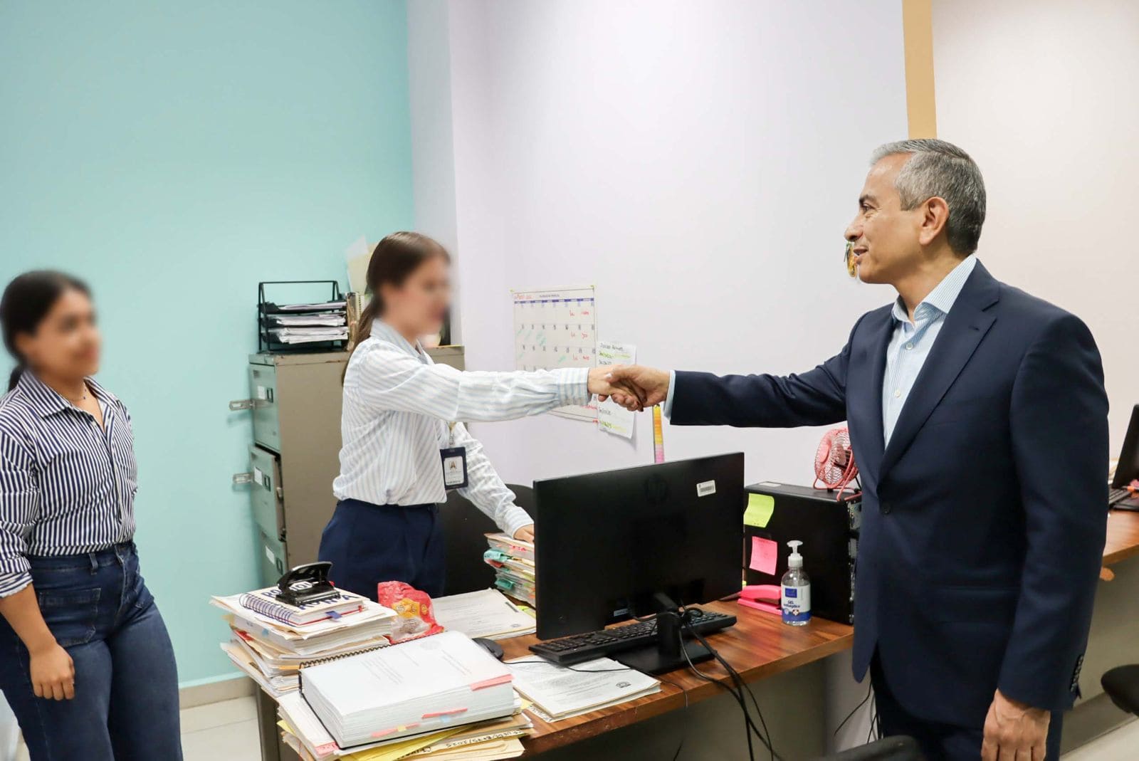 Durante la visita de trabajo, el Fiscal General recorrió las instalaciones, supervisó las condiciones en que laboran los funcionarios, escuchó sus necesidades y peticiones para mejorar sus áreas de trabajo, así como la atención a la ciudadanía.