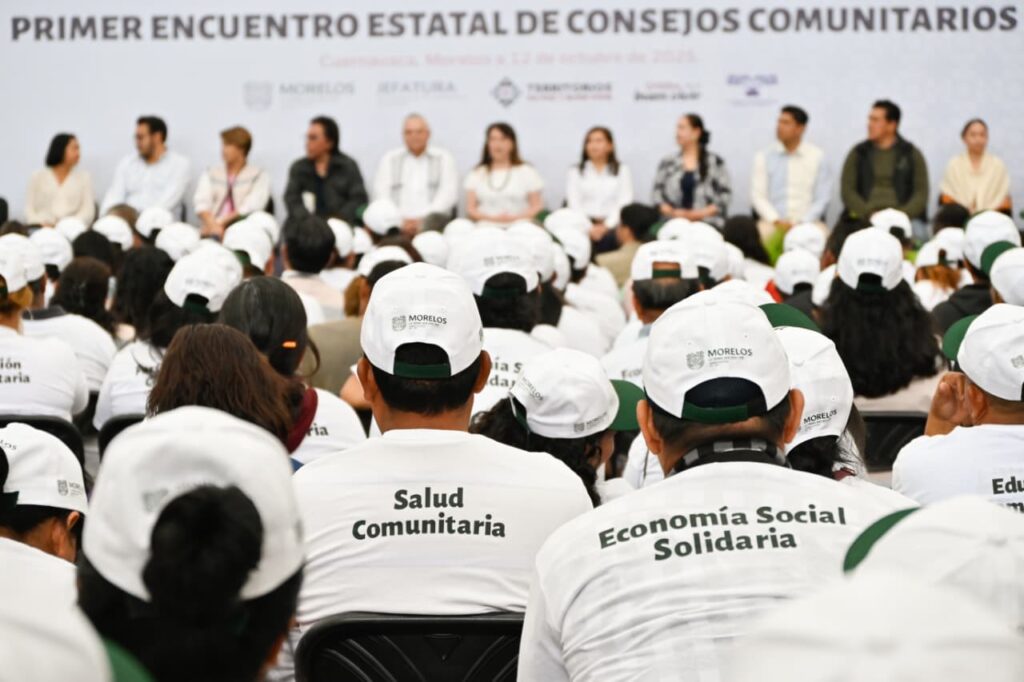 La gobernadora Margarita González Saravia encabezó el Primer Encuentro Estatal de Consejos Comunitarios, donde tomó protesta a los 103 Consejos de Desarrollo Comunitario del programa Territorios de Paz y Buen Vivir, estrategia que impulsa la organización social y la reconstrucción del tejido comunitario en Morelos.