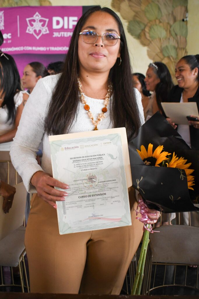 El DIF Jiutepec realizó la entrega de certificaciones a 92 alumnas y 5 alumnos que concluyeron satisfactoriamente capacitaciones en sus Centros de Desarrollo Comunitario (CDC).