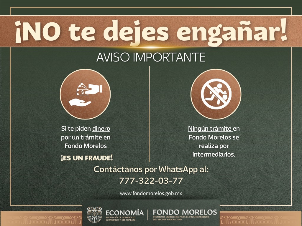“Nuestro compromiso es proteger a la ciudadanía y darles la tranquilidad de que las solicitudes son atendidas sin intermediarios ni cobros indebidos. Queremos que las y los morelenses sepan que cuentan con una institución confiable, cercana y lista para respaldar sus proyectos productivos”, reiteró.