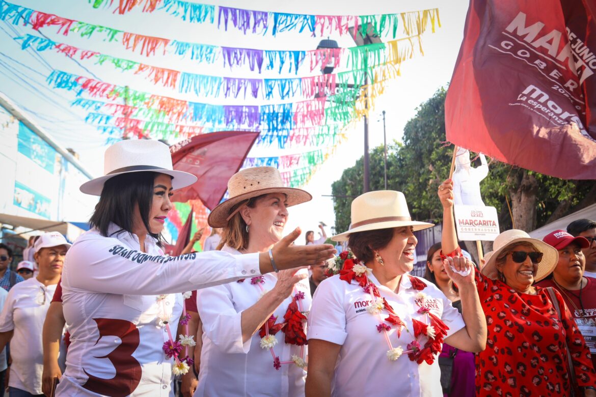 En el municipio de Jonacatepec, sitio de historia y gente fuerte, Margarita González Saravia, candidata a la gubernatura de Morelos por la coalición Sigamos Haciendo Historia, compartió que las y los morelenses saben que el primer mandatario ha actuado de manera ejemplar y ha puesto los estatutos de un gobierno honesto, austero y cercano al pueblo y, por ello, todas las y los candidatos de Morena deben seguir la misma línea y principios de un verdadero liderazgo.