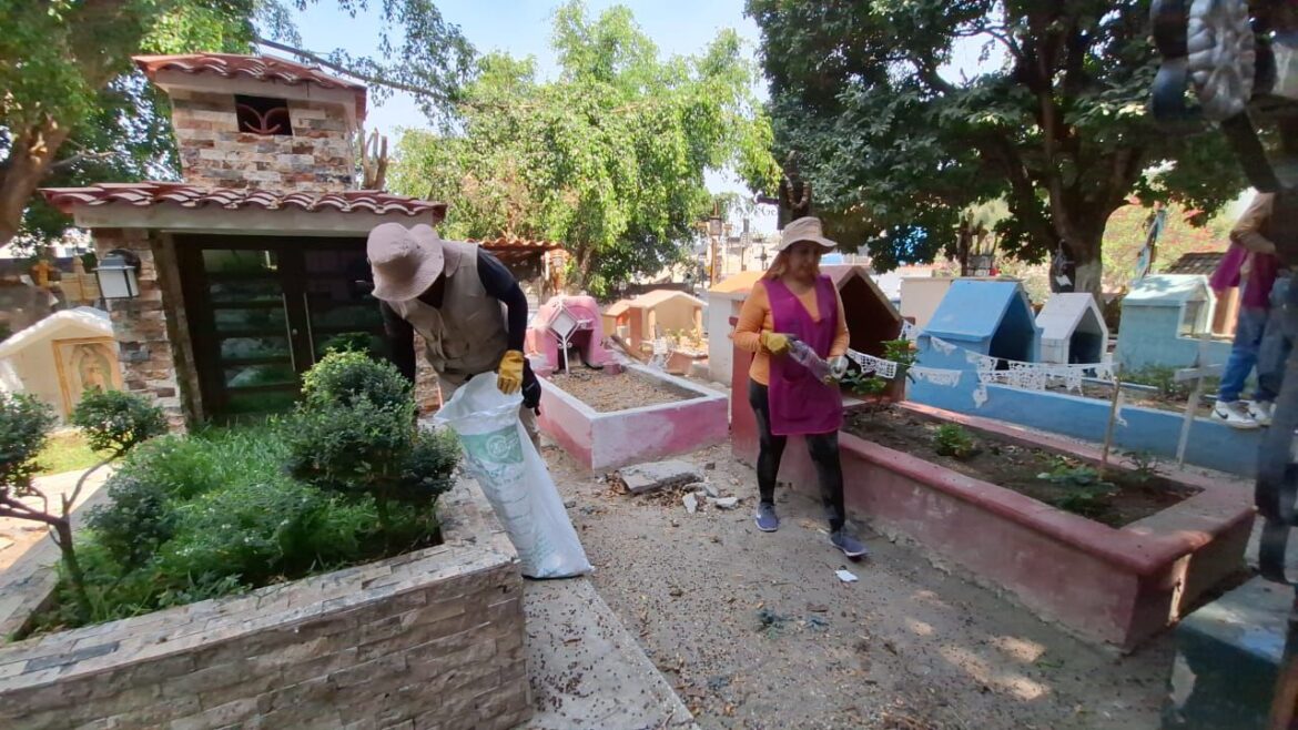 Para procurar la salud de las personas que visitan los nueve panteones ubicados en el municipio, en especial de quienes acudirán el Día de las Madres, personal del Gobierno de Jiutepec implementó un operativo de limpieza de los cementerios.
