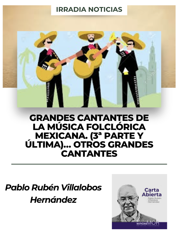 Empecemos esta secuencia con el famoso Rey del Falsete y de los Huapangos, con el distintivo de su mechón blanco en el copete Miguel Aceves Mejía, ¡qué pléyade de canciones! como “El Pastor; La Malagueña; El crucifijo de piedraEl Jinete; Tata Dios; Tú y las nubes”… El genio musical del gran compositor tamaulipeco Cuco Sánchez quien entre sus populares canciones nos dejó: “No soy monedita de oroTe parto el almaLa Cama de Piedra; Anillo de Compromiso; Grítenme Piedras del Campo” y quien sabe cuántas más… El hombre de la voz y el grito broncos Francisco Charro Avitia cantó y muy bien: “Carabina 30-30; El Corrido del Caballo BlancoEl aeroplanoLa Martina; Una Pura y Dos con Sal”… Refiero también a un cantante que se inició por rumbos de esta nuestra tierra Morelos, Juan Valentín quien nos deleitó con temas como: “Urge; El Segundo Lugar; Mi Vejez; Otra en tu lugarPerro sin dueño”… También debemos citar a Alberto Ángel El Cuervo con inolvidables interpretaciones como “El Crucifijo de Piedra; Júrame; El Preso Número Nueve; Te quiero dijisteLos camperos” entre muchas más… Desde luego, también está el popular Lorenzo de Monteclarocon su famosas interpretaciones: “El ausenteLa Cárcel de Cananea; Ese Señor de la Canas; Abrazado de un Poste; Carga ladeada” y otras… Cómo no recordar a mi ‘compa’ actor y cantante de a caballo, vecino de Cuernavaca, Gerardo Reyes quien nos dejó: “Caminos de Michoacán; Libro Abierto; Bohemio de Afición; Ya vas carnalLa silla vacía” y muchas más… Y desde luego, dejo aquí al Grande, Grande de Huentitán, Jalisco Vicente Fernández quien nos dejó como legado: “El ReyPor tu Maldito Amor; Mujeres divinasVolver Volver; La Ley del Monte” y cientos más… Desde luego, refiero con afecto y cariño a mi alumno en la Escuela Militarizada Cristóbal Colón, el guerrerense nativo de Juliantla por rumbos de Taxco, José Manuel Figueroa, el gran Joan Sebastian de vasto repertorio como cantautor con canciones como: “Juliantla” su Tierra; “Secreto de Amor; Eso y másBandido de Amores; Diséñame”… Con una larga trayectoria el carismático Fedro Fernández nos ha regalado interpretaciones como: “La de la Mochila azul; Yo El Aventurero; Amarte a la Antigua; Bésame morenitaEl siete mares”… Alejandro Fernández, heredero del gran “Chente” ha brillado con luz propia con temas como:  “Cuando Yo Quería Ser Grande; Nube Viajera; La Mitad que me Faltaba; AbrázameCascos ligeros” y muchas más… Por su parte Pepe Aguilar, también cantante de dinastía nos ha brindado bellas canciones tales como: “Por Mujeres Como Tú; Por Una Mujer Bonita; Por Amarte; Recuérdame bonitoTus desprecios”… Hasta aquí la que sólo es parte de una larga lista de grandes intérpretes… La Música Ranchera no existiría sin el acompañamiento del Mariachi… Por ello ahora mencionamos sólo a algunos de los más representativos, todos ellos tiene el distintivo de ser MARIACHIS… Vargas de Tecalitlán; Los Camperos; Los Rancheros; México de Pepe Villa; El Sol de México; Gama 1000, Alma de Juárez y cientos más que existen a lo largo y ancho de México y en decenas de lugares del mundo… Que conste, Usted puede agregar a todos los muchos más intérpretes, ellas o ellos y grupos de mariachis que sean de su agrado, recuerdo, admiración y afecto por el grandioso legado de tantas bellas canciones folclóricas mexicanas que nos dejaron… ¡Viva la Música Vernácula Mexicana…! Ya encarrerados, vamos con otros grandes cantantes… También en otros géneros musicales, nuestro País a lo largo de su historia ha sido cuna de grandes cantantes e intérpretes, a continuación hago referencia a algunos de ellos, helos aquí: María Victoria, Germán Valdéz Tin-Tan,César Costa, Enrique Guzmán, Angélica María, Julissa, Johnny Laboriel, Rigo Tovar, La Sonora Santanera, Sergio Esquivel, Carlos Lico, Gualberto Castro, Marco Antonio Muñiz, José José, Imelda Miller, José María Napoleón, Emmanuel, Lupita D’Alessio, Yuri, Ana Gabriel, Alex Lora, Paquita La del Barrio, Jenni Rivera, Guadalupe Pineda, Manoella Torres, Estela Núñez, Dulce, Eugenia León, Daniela Romo, Susana Zavaleta, Regina Orozco, Lila Downs, Lucero, Mijares, Marisela, Alejandra Guzmán, Cristian Castro, Luis Miguel, Yuridia, Carlos Rivera y muchos más… Acotación: Esta secuencia la iniciamos con una larga lista de Grandes Figuras de todos los tiempos de la Música Folclórica Mexicana, pues nuestro País siempre ha destacado por tener una bastedad de excelentes cantantes e intérpretes, pero es triste no ver continuidad en la formación de nuevos valores y figuras que tomen la estafeta de aquellos grandes, no estoy diciendo que ya no haya talento, pues tenemos y de sobra, lo que hace falta es apoyo e impulso para volver a tener Íconos nuestra música Ranchera y romántica frente al paso del tiempo como los que integran esta recopilación… Por ahí se asoman nombres como Alex Fernández(hijo de Alejandro y nieto de Vicente), Rosy Arango y Angélica Vargas(Hija de Manuel Vargas, integrante del Mariachi de Tecalitlán)… En ellos junto con los que surjan y se les dé el apoyo y difusión necesarios pondremos nuestra esperanza para que La Música Folclórica y Romántica Mexicanas no desaparezcan… ¡Cuántos nombres, canciones, cantantes, compositores, recuerdos, letras y nostalgias…! Gracias por el apoyo a mi Asistente Erick Guevara González… ¡Ahí la dejamos!Continuará¡Hasta mañana que será un día más!
