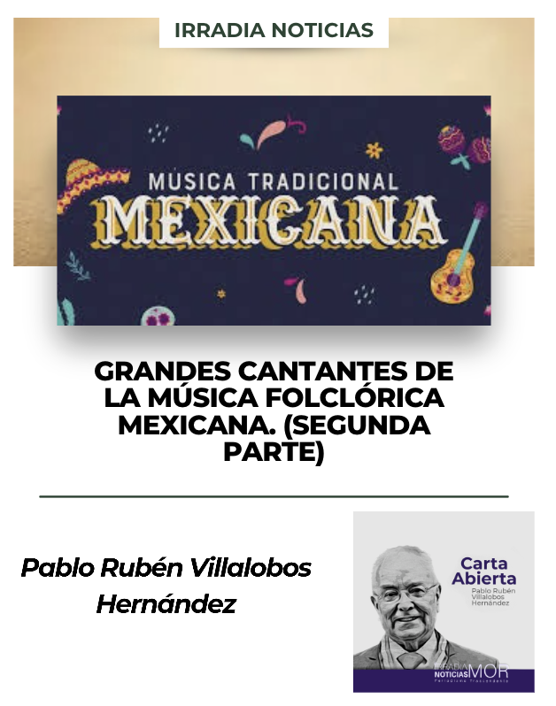 En esta secuencia por la segunda entrega de los intérpretes y canciones de la música vernácula mexicana, vamos al encuentro de otras significadas voces e interpretaciones que forman parte de la riqueza de las llamadas Canciones Rancheras que conforman el interminable acervo que nos dejaron los grandes cantantes, autores y compositores con cientos o miles más, algunos con cierta presencia y otros casi anónimos pero todos ligados a nuestra música vernácula… Vayamos con los famosos… Lola Beltrán, Lola La Grande, quien nos regaló bellas canciones como “Cucurrucucú Paloma; Huapango Torero; Paloma Negra; Los Laureles; Por un amor” y docenas más de grandes recuerdos… Qué decir de Amalia Mendoza “La Tariacuri”, quien entre otras canciones con las cuales lloraba interpretó “Amarga Navidad; Puñalada Trapera; Pobre del Pobre; Con nada me pagas; La traidora” y más… Recordamos a La Grandota Lucha Villa con temas como “¿Qué te falta mujer?; No Discutamos; Corrido de Chihuahua; La Caponera; El Gallo de Oro” y otras… Sin duda otra grande lo fue María de Lourdesquien nos deleitó con estas canciones “La Cigarra; La Noche y Tú; Mi Ciudad; Tierra de mis amores; Qué bonito amor” y cuántas más… Sin olvidar a la bella Flor Silvestre con temas como “Mi destino fue quererte; La Chancla; Cartas Marcadas; Estrellita marinera; Celosa” y otras… Matilde Sánchez “La Torcasita” con sus interpretaciones de “Amigo Tiempo; El Toro Relajo; Aires del Mayab; Devoción Ranchera; Dos arbolitos”… La grata voz de la hermosa Rosita Quintana cantando “Yo no me caso Compadre; El Mosco Cachetón; La Ojona; Serenata sin luna; Arráncame la vida” y más… Rosenda Bernal con sus potentes interpretaciones de temas como “La Silla Vacía; Cheque en Blanco; La Hija de Nadie; Ingratos ojos míos; Amores fingidos” con más… La voz y sentimiento de Aida Cuevas al interpretar “Arrieros somos; Cielo Rojo; La Llorona; Viva México; Amor del alma” y muchas más… Recuerdo a Las Jilguerillas (Amparo e Imelda Higuera Páramo) cantando “Busca otro amor; Carta Jugada; Cruz de madera; Dos botellas de mezcal; Mi recuerdo”… Las Hermanas Águila (María Esperanza y María Paz Águila Villalobos) con los temas “Hilos de Plata; Nochecita; Como dos puñales; Humo en tus ojos; Amor de ayer; Señora tentación” y varias más… Las Hermanas Landín (Avelina y María Luisa Landín Rodríguez) con las canciones “Pobre de mí; Falsa; Qué no diera; Mi primer amor; Cariñito”… Las Hermanas Huerta (Aurora y Luz Huerta) interpretando “Tampico hermoso; Sea por Dios; En las cantinas; La mal casada; Las cuatro milpas”… Y como no recordar a Queta Jiménez La Prieta Linda quien nos regaló “Al Ver; ¿Que Te Falta?; Mil Cadenas; No Volverás a Verme; Mal Pagadora”… Y mire usted amable Lector si ya las referimos a tantas grandes intérpretes como ellas vamos también a citar a algunos de ellos, los grandes cantantes de nuestro folclor musical… ¡Arrancamos…! Sin duda el más popular de todos los tiempos lo es el versátil Pedro Infante, ¡Qué canciones!, “Amorcito Corazón; Mi Cariñito; Cien Años; La Calandria; Tu enamorado” y muchísimas más… Otro de los grandes lo es El Charro Cantor, Jorge Negrete con interpretaciones como “México Lindo; Amor con Amor se Paga; Yo Soy Mexicano; ¡Ay Jalisco no te rajes!; Me he de comer esa tuna”… Romántico y folclórico lo fue el matancero del desaparecido Rastro de Tacubaya en la ahora Cdmx Gabriel Siria Levario, mejor conocido como Javier Solís quien nos dejó estas joyas musicales: “Renunciación; Gracias; Las Rejas No Matan; Tu voz; Esclavo y Amo”… Qué no decir del llamado Tenor Continental, El Samuray de la Canción Don Pedro Vargas entre cuyo basto repertorio nos quedaron canciones como “Bésame Mucho; Negra consentida; La Negra Noche; Soy puro Mexicano; Adiós Mariquita linda”, ¡qué voz…! El versátil Alberto Vázquez que entre sus górgoros rancheros se despachó estas: “El Pecador; La Traicionera; El Muchacho Alegre; De que te quiero, te quiero; Pa’ que sepas lo que siento”… Vamos con el firme y varonil Antonio Tony Aguilar, buen actor y gran cantante de quien recordamos “Tristes recuerdos; Un Puño de Tierra; Albur de Amor; Un Siglo de Ausencia; Ay Chavela”… Por supuesto debemos mencionar en esta lista al gran ‘Divo de Juárez’, Juan Gabriel, que ha contribuido con bellísimas canciones de este género musical tales como: “La Diferencia; Se me olvidó otra vez; La muerte del palomo; Ases y tercia de Reyes; Con todo y mi tristeza” y muchas más… Grande, Grande es El Rey del Tenampa José Alfredo Jiménez su autoría e interpretaciones, amén de invaluables son una riqueza por sus canciones como “El Rey; Si nos dejan; Paloma Querida; El Jinete; Un mundo raro; Mi Tenampa” y cientos más… Gracias por el apoyo a mi Asistente Erick Guevara González… ¡Ahí la dejamos! Continuará. ¡Hasta mañana que será un día más!