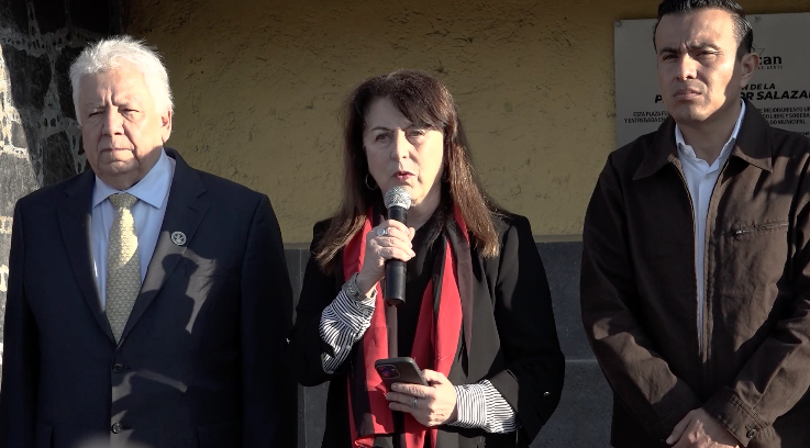Durante el acto cívico, la mandataria estatal expresó su respeto y reconocimiento a la trayectoria de Don Juan Salgado Brito, a quien describió como un servidor público comprometido con el bienestar de la población y con la construcción de un Morelos más justo, solidario y en paz.