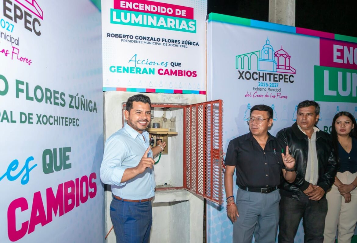 Con acciones que generan cambios, el presidente municipal de Xochitepec, Roberto Gonzalo Flores Zúñiga “Chalo” Flores, encabezó el encendido de 66 luminarias de tecnología led, que se ubican sobre la carretera federal Cuernavaca – Taxco, en el tramo que comprende de Palo Bolero a la Colonia Valle Dorado, en Alpuyeca.