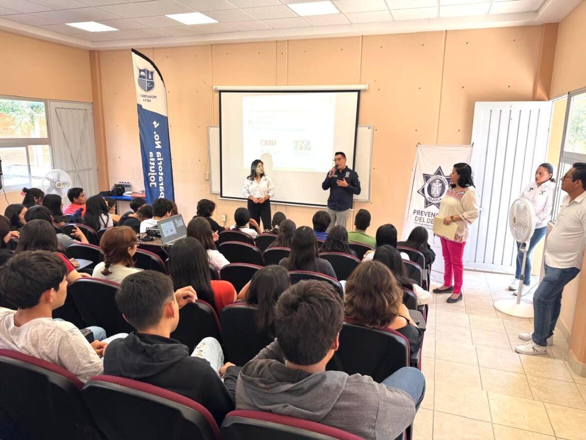 En seguimiento a las acciones de prevención social, personal de la Secretaría de Seguridad y Protección Ciudadana (SSPC) Morelos impartió la conferencia titulada «Consecuencias de la comisión de delitos por adolescentes», en la Preparatoria Número 4 de la Universidad Autónoma del Estado de Morelos (UAEM), ubicada en el municipio de Jojutla , con el objetivo de sensibilizar a la comunidad estudiantil sobre los riesgos asociados a conductas que puedan derivar en hechos delictivos, informó Dulce Ivonne Velázquez Olivares, directora general del Centro Estatal de Prevención Social de la Violencia y la Delincuencia.