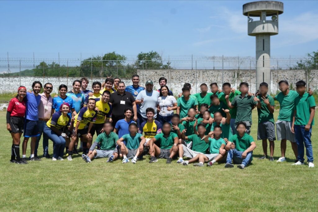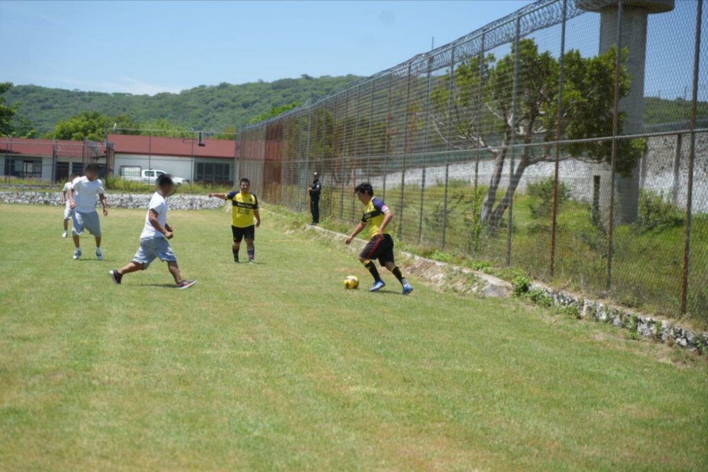 Asimismo, se llevó a cabo un partido de futbol amistoso con jóvenes internos de dicha institución, con lo que se promueve la inclusión, la prevención y la reconstrucción del tejido social.