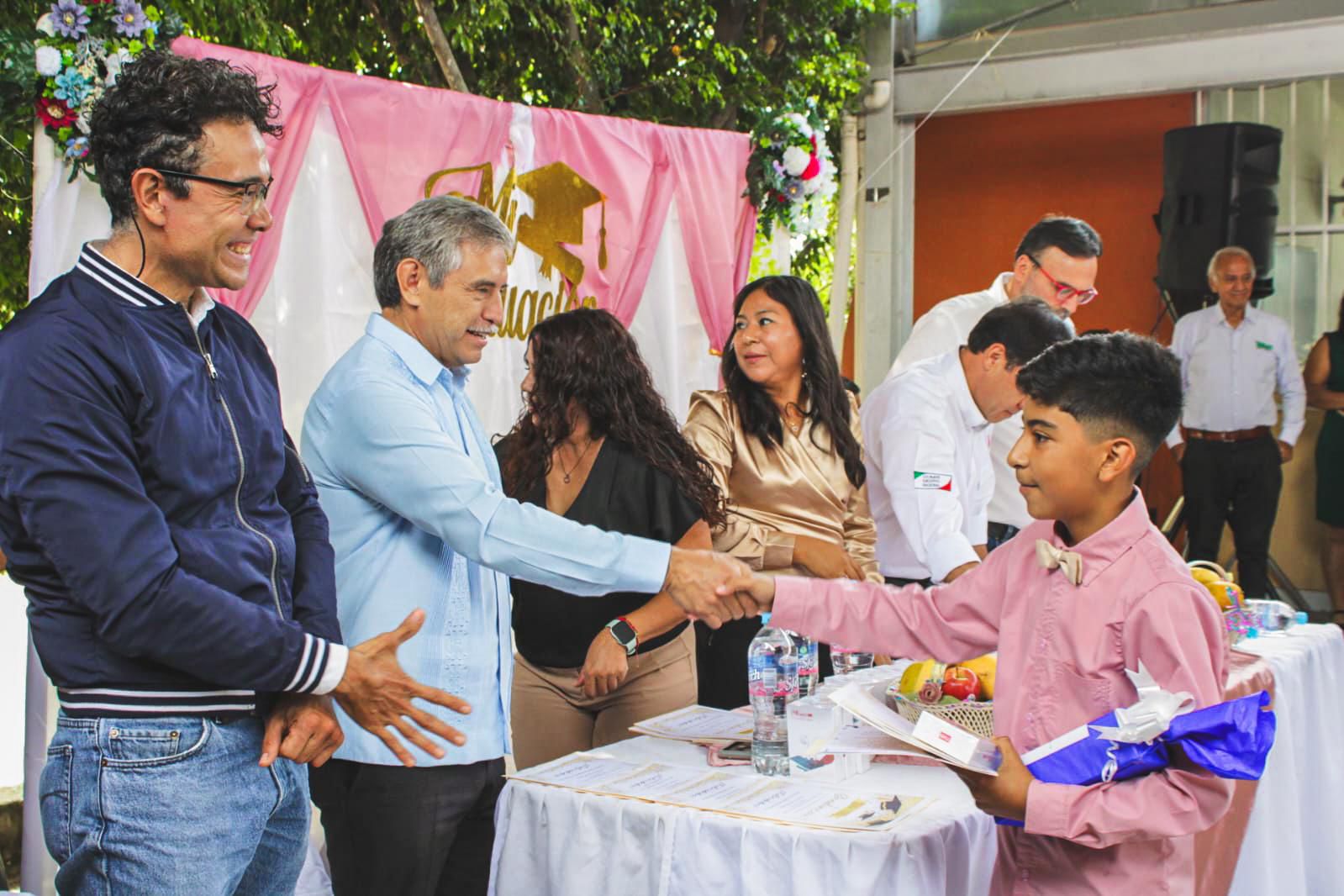 Durante su participación como padrino de la generación 2019-2025 de la primaria «Prof. Tránsito Sánchez Urióstegui”, el alcalde reconoció a las y los egresados, y anunció que en próximos días se publicará la convocatoria de becas por Excelencia académica para estudiantes de sexto grado de primaria y primero de secundaria con promedio de 9 a 10, quienes recibirán un apoyo único de dos mil 500 pesos como reconocimiento a su disciplina y compromiso escolar.