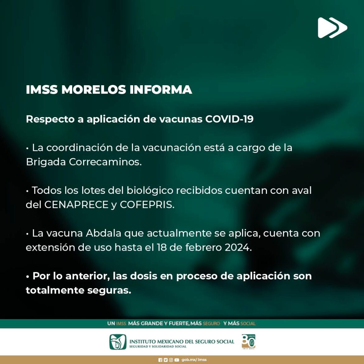 Respecto a la aplicación de vacunas contra COVID-19, la Representación del Instituto Mexicano del Seguro Social (IMSS) en Morelos emitió los siguientes puntos aclaratorios: