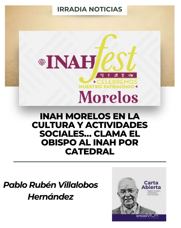 INAH Catedral… A propósito del INAH, este Instituto ha sido requerido por el obispo de la diócesis de Cuernavaca Ramón Castro Castro, para que reanude y concluya las obras de reconstrucción y restauración de la Catedral de Cuernavaca que fueron programadas pero que aún no se concluyen, luego de los severos daños que le dejara a esta simbólica e histórica edificación católica el sismo del 2017… Como se recordará, el Instituto Nacional de Antropología e Historia emprendió ardua labor por la reconstrucción y restauración de múltiples templos, conventos, monasterios, parroquias y hasta la propia Catedral en diversas poblaciones del Estado de Morelos… Las inversiones aplicadas por ese instituto a casi ocho años de distancia, fueron cuantiosas en miles de millones de pesos… Sin embargo, por ser altamente representativa y simbólica la Catedral de Cuernavaca, consideramos que el INAH debe sacar recursos de donde sea posible a efecto de concluir las obras anunciadas, emprendidas pero no concluidas, para dejar a esta edificación de relevancia religiosa en condiciones óptimas por cuánto a lo que le falta para su entrega definitiva tanto a la diócesis que dirige el obispo Castro, como a la feligresía y desde luego para la admiración de los miles de visitantes que tiene la Catedral de Cuernavaca… Víctor Hugo Valencia Valera el Delegado del INAH como gestor tiene la palabra… ¡Estaremos al pendiente! ¡Hasta mañana que será un día más!
