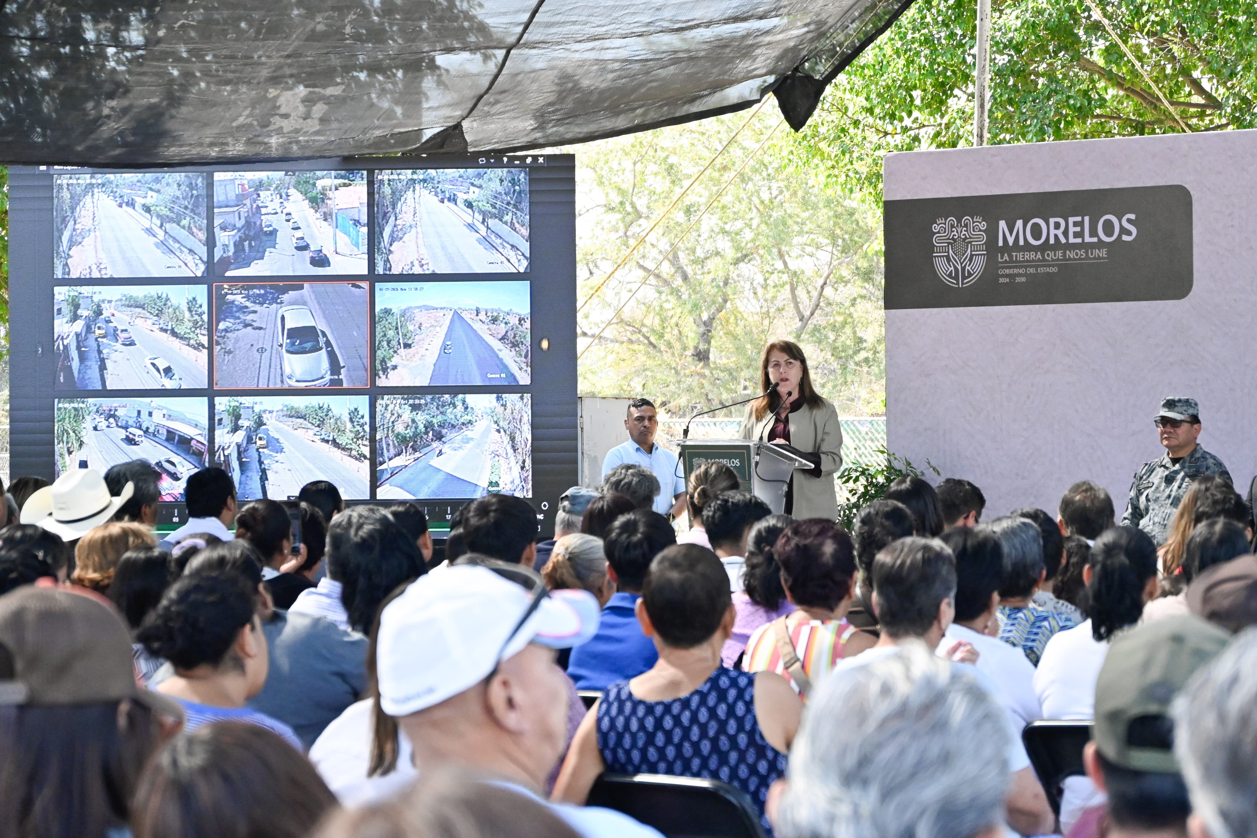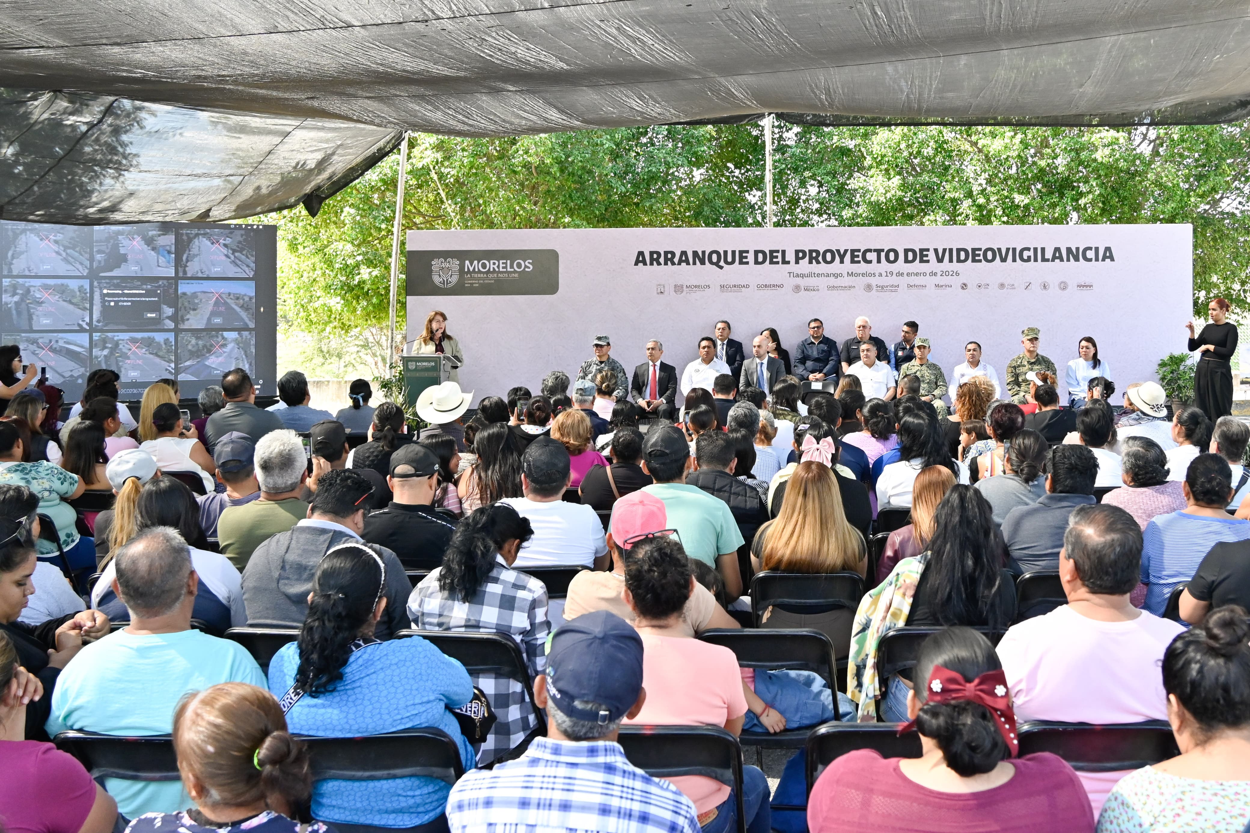 Como parte de su agenda de trabajo en la región sur de Morelos, la gobernadora Margarita González Saravia, junto con integrantes de la Mesa de Coordinación Estatal para la Construcción de Paz y Seguridad, inauguró un arco carretero de videovigilancia en el municipio de Tlaquiltenango, herramienta tecnológica que fortalece el monitoreo en tiempo real, agiliza la atención de emergencias y contribuye a la prevención del delito.