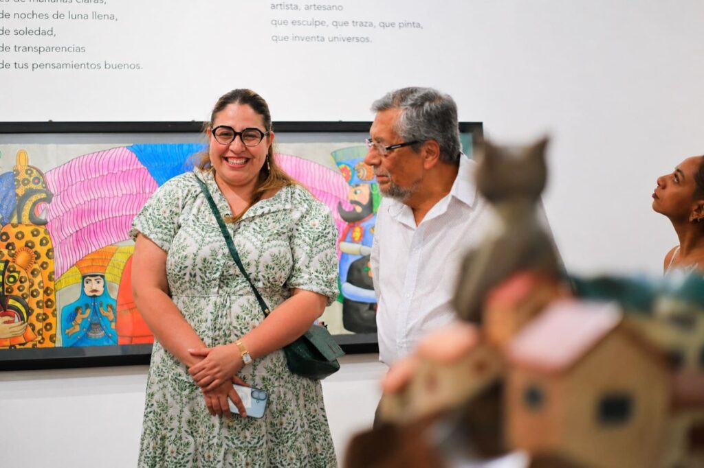 Por su parte, el artista Víctor Gochez agradeció el respaldo de las autoridades culturales, así como el acompañamiento de su familia y del equipo de la Dirección General de Museos y Exposiciones. Posteriormente, se llevó a cabo el corte de listón y un recorrido guiado por la exposición, donde las y los asistentes conocieron de primera mano el universo creativo del autor.