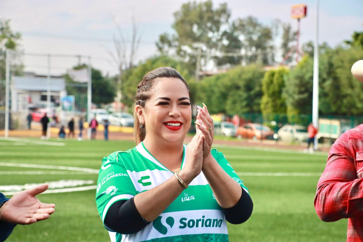 La legisladora y líder del PT dió la patada inicial de un partido amistoso, en el que los habitantes le expresaron su reconocimiento por la gestión de recursos para recuperar este espacio deportivo.