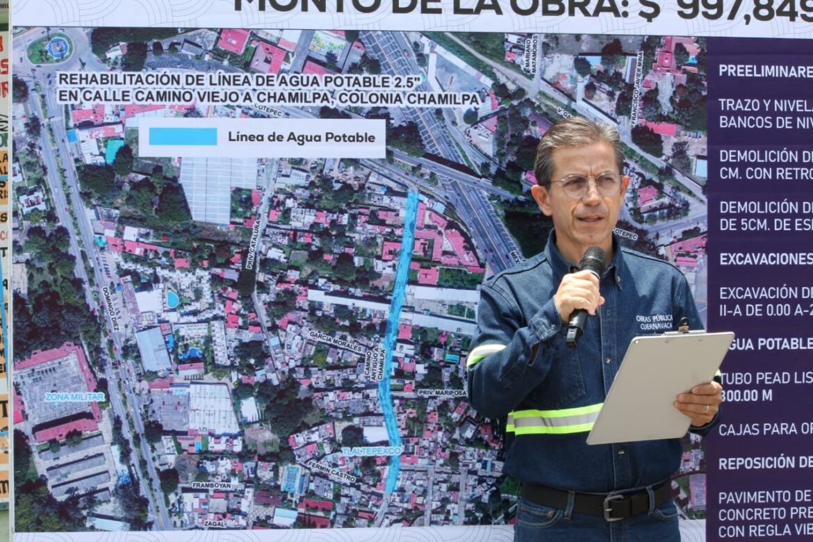 Como parte de las acciones que buscan abonar a mejorar el servicio de distribución de agua potable, la Secretaría de Desarrollo Urbano y Obras Públicas del Ayuntamiento de Cuernavaca, dio a conocer a vecinas y vecinos del inició de los trabajos de la rehabilitación de la línea de agua potable de 2.5 pulgadas en la calle Camino Viejo a Chamilpa de la colonia Tlaltepexco.