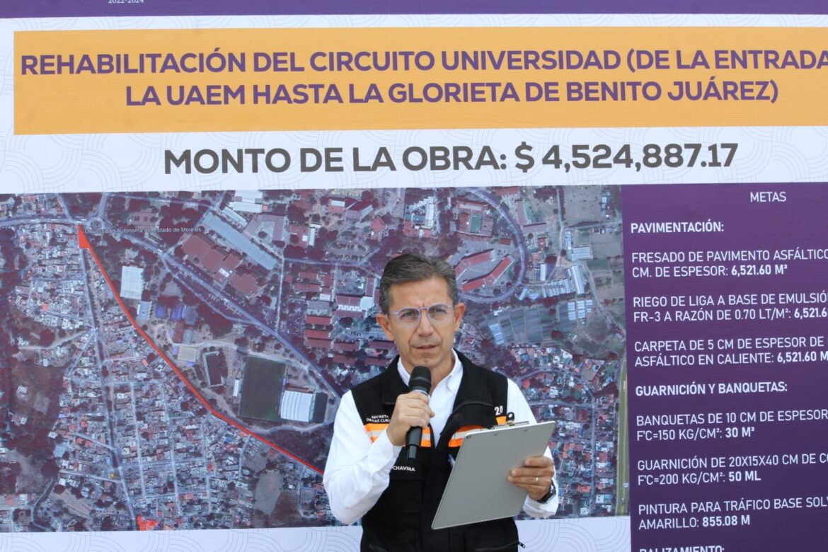 A petición de la comunidad universitaria y para seguir abonando a la seguridad vial en los alrededores de la Universidad Autónoma del Estado de Morelos (UAEM), el Ayuntamiento de Cuernavaca, a través de la Secretaría de Desarrollo Urbano y Obras Públicas, arrancó este lunes los trabajos de rehabilitación del circuito universitario exterior que se extenderán desde la puerta uno hasta la puerta dos frente a la glorieta de Benito Juárez.