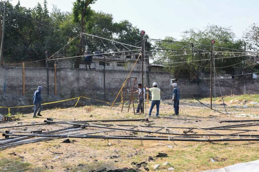 Las actividades iniciaron este lunes por la mañana con el retiro de una carpa y posteriormente se dio paso al derribo de una barda perimetral que estaba a punto de colapsar pues significa un riesgo para la labor de los peritos y especialistas de Fiscalía Morelos, así como de otras dependencias.