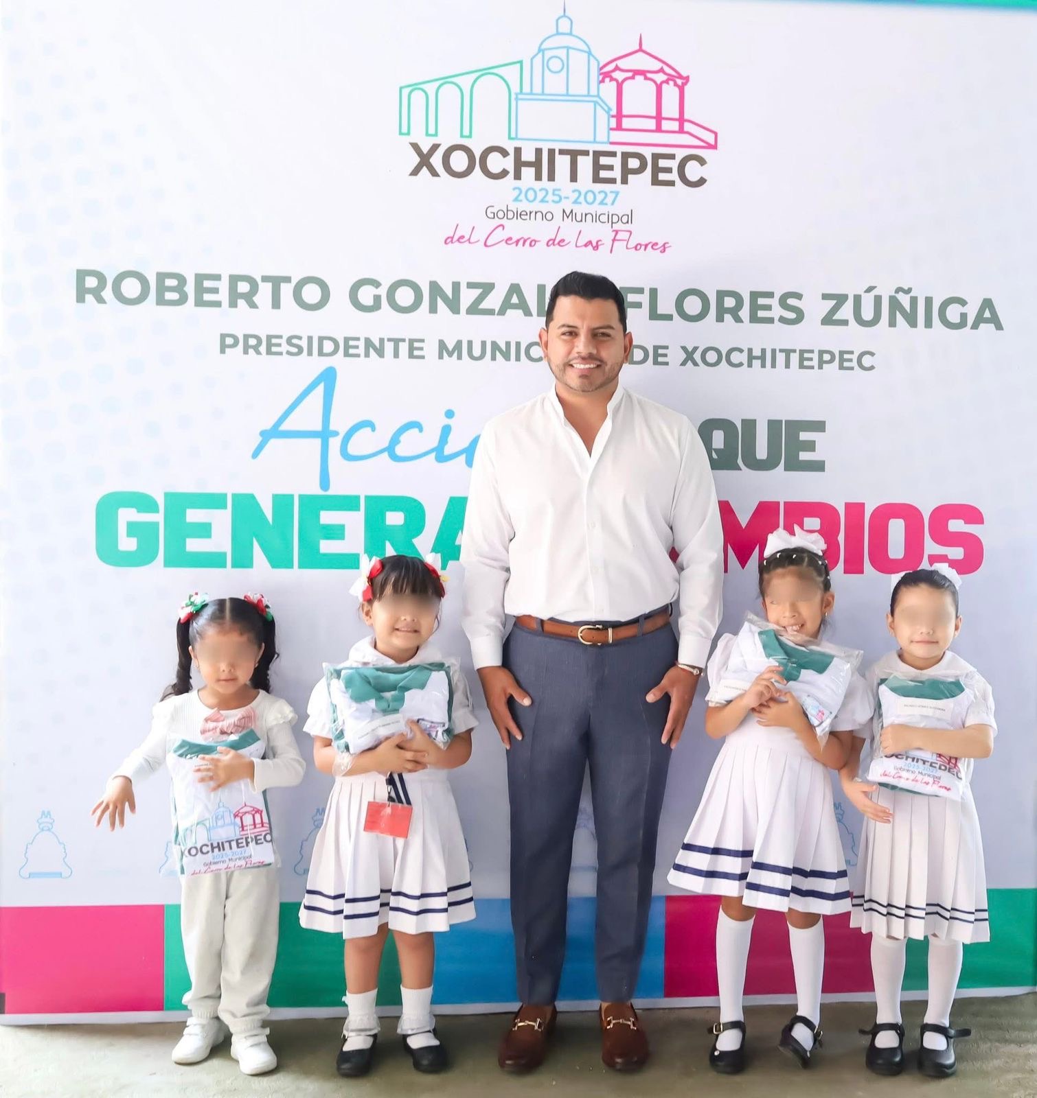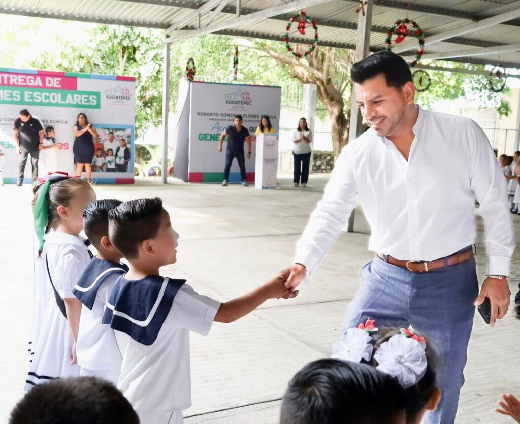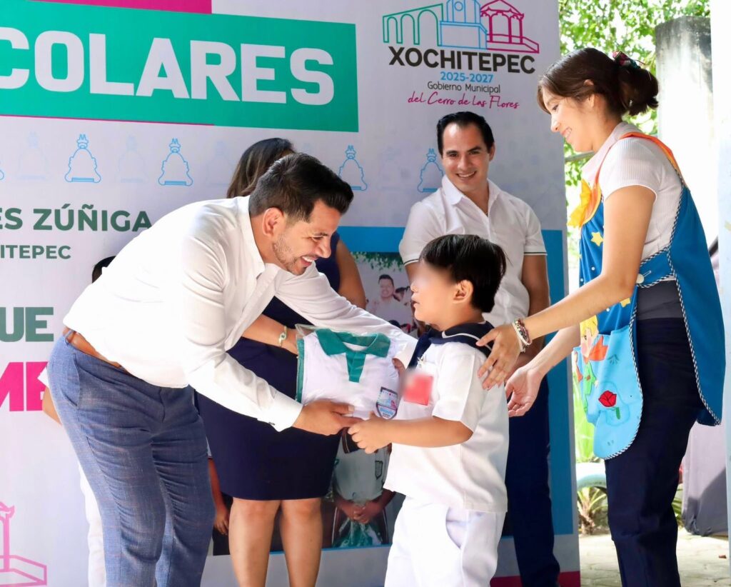 El presidente municipal de Xochitepec, Roberto Gonzalo Flores Zúñiga “Chalo Flores”, dio inicio a la entrega de uniformes escolares deportivos a nivel preescolar, beneficiando en esta primera entrega a 72 niñas y niños del Jardín de Niños Adolfo López Mateos de Alpuyeca.
