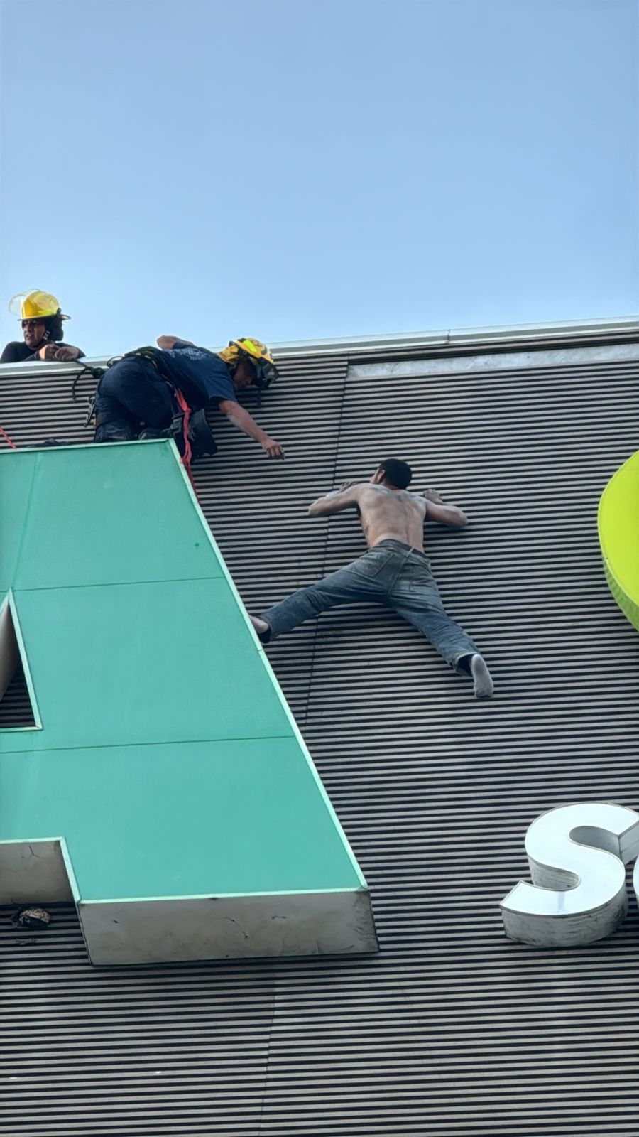 La oportuna intervención de Bomberos y elementos de la Secretaría de Protección y Auxilio Ciudadano (SEPRAC) de Cuernavaca permitió atender a tiempo el reporte de una persona en la parte alta de las letras de una tienda departamental, ubicada en la colonia Lomas de la Selva.