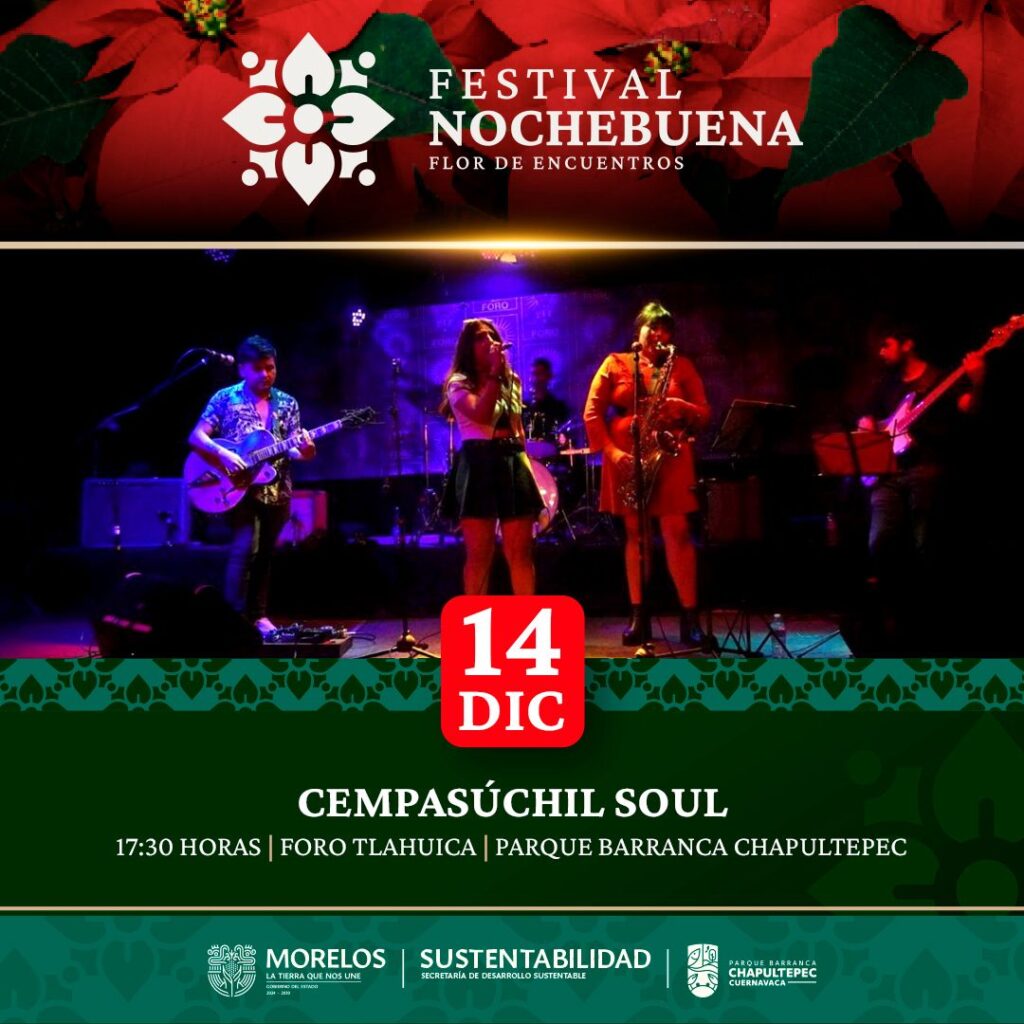 Para cerrar el fin de semana, la banda Cempasúchil Soul se presentará en el Foro Tlahuica, ofreciendo un repertorio especial para esta temporada.