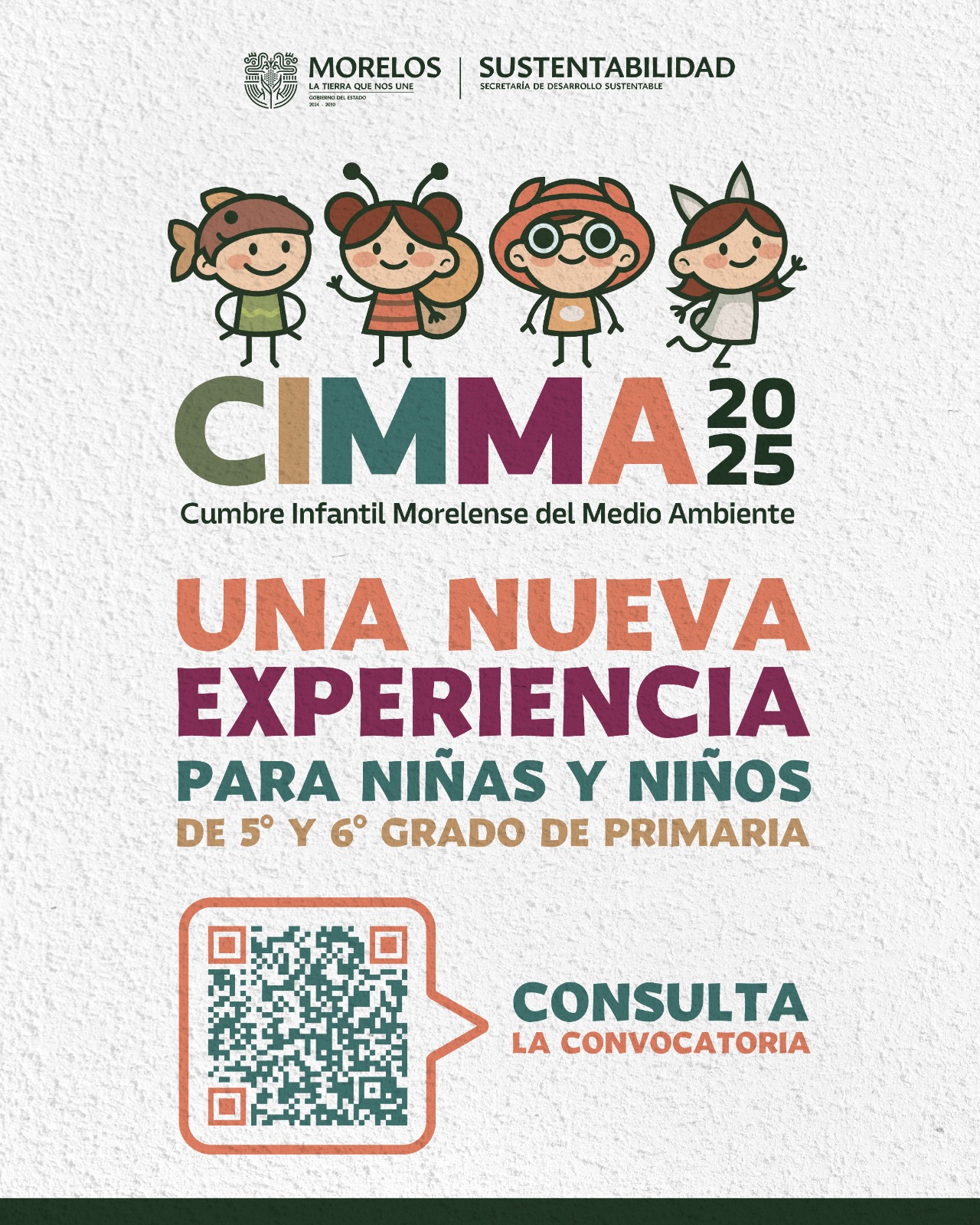 La Secretaría de Desarrollo Sustentable (SDS) del Gobierno del Estado de Morelos invita a maestras y maestros de educación primaria a vivir la nueva experiencia de la Cumbre Infantil Morelense del Medio Ambiente (CIMMA) 2025, junto con sus alumnas y alumnos, presentando un proyecto ambiental innovador.