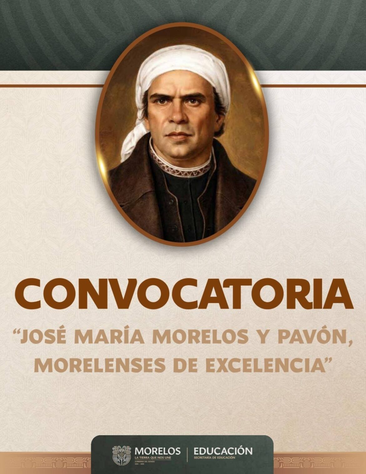 Con el objetivo de reconocer el compromiso y vocación de quienes contribuyen de manera significativa al desarrollo del estado, el Gobierno que encabeza Margarita González Saravia, a través de la Secretaría de Educación, invita a las y los morelenses a participar en la convocatoria para la entrega de la Venera “José María Morelos y Pavón, Morelenses de Excelencia”. Esta distinción se enmarca en la conmemoración del CLVII Aniversario de la creación del estado de Morelos.