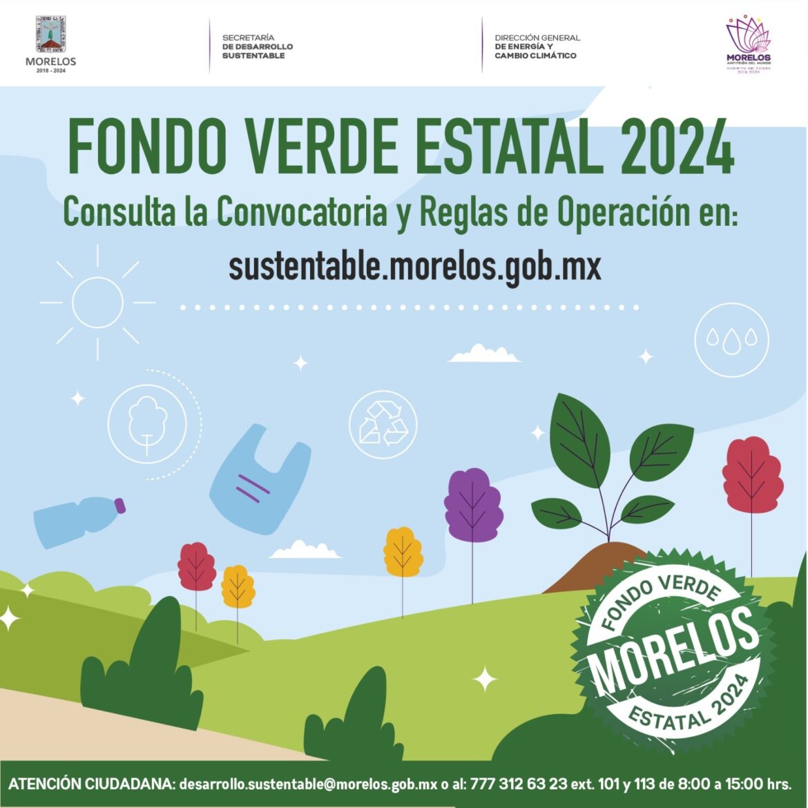 Las personas interesadas en participar pueden consultar las bases en el sitio: www.sustentable.morelos.gob.mx se tomarán en cuenta iniciativas para la protección de Áreas Naturales Protegidas y la biodiversidad. Remediación, clausura y cierre de tiraderos a cielo abierto, servicios hidrológicos, residuos sólidos urbanos y de manejo especial, entre otros.