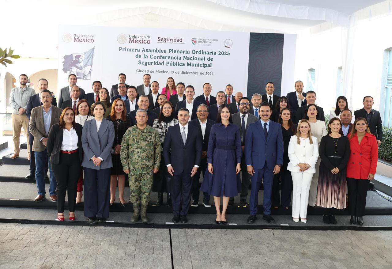 El secretario Omar García Harfuch destacó que los municipios representan la base del Sistema Nacional de Seguridad Pública, al ser la primera autoridad con la que interactúa la población. Por ello, reiteró que desde la Presidencia de la República se impulsa el fortalecimiento de las corporaciones locales y la consolidación de la Estrategia Nacional de Seguridad en cada territorio del país.